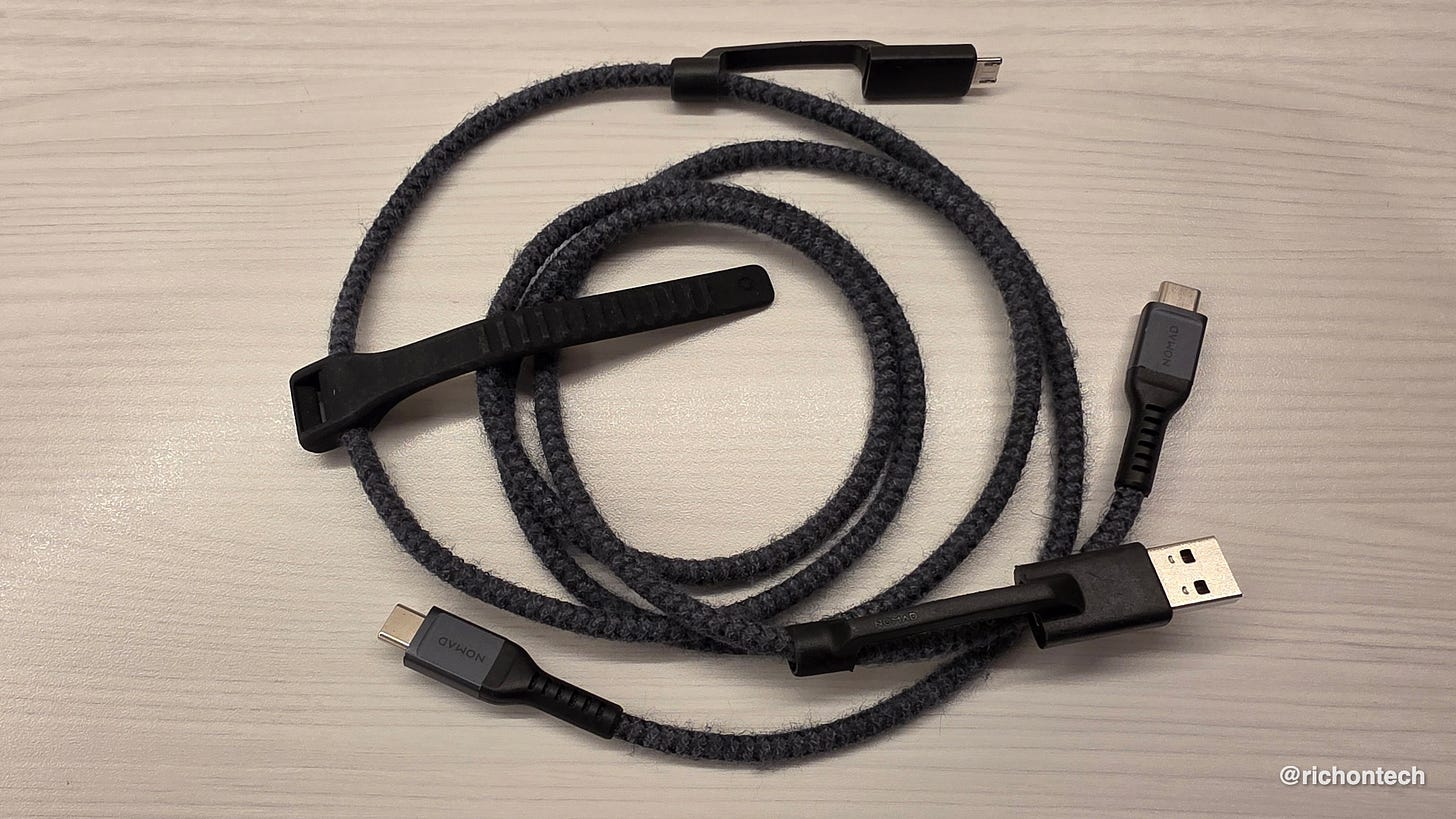 One more thing before we get into the news. If you travel at all, you need this cable. It’s basically the Swiss Army knife of charging cables. It’s Nomad’s $35 Universal Cable, and it has just about every connector you can think of so you’re never stuck without a way to charge. Seatback only has old school USB-A? You’re covered. Rental car only has USB-C? No problem. Need to charge an older device that still uses Micro-USB, like my classic Kindle or favorite travel night light? Done. It’s so useful I keep it in the front pocket of my bag so I can always grab it quickly and keep my phone charged on the plane no matter what kind of ports are available.