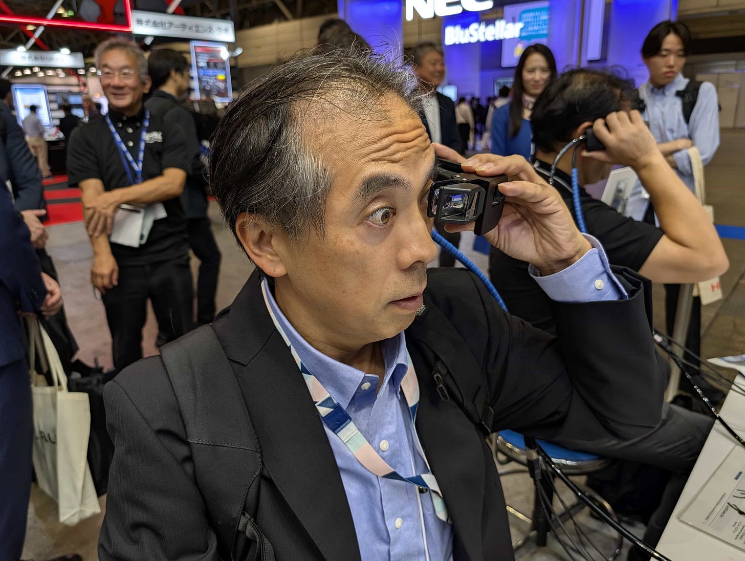 At TDK, I tried on a new laser optical module that projects images directly onto the retina - a feature they promised me is completely safe.