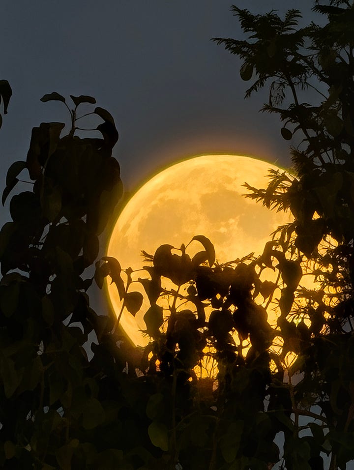 I was playing outside with my kids when I turned around and saw the moon — glowing yellow-orange, framed by trees — it looked straight out of a movie. A quick Google search told me it was the Harvest Moon, and of course, I had to grab my cameras.