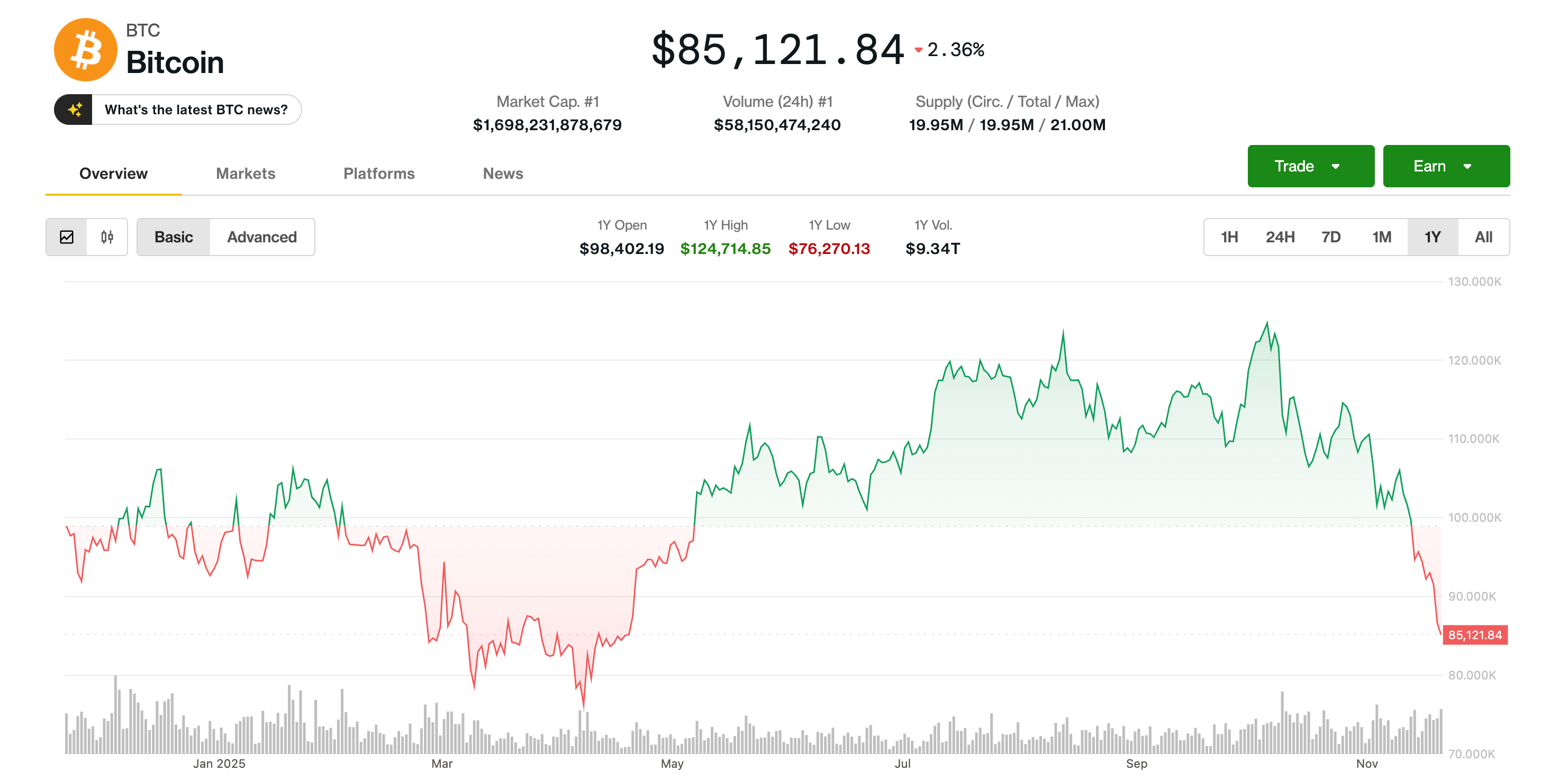 To put it in perspective, Bitcoin is now around $80,000 a coin. In October it hit an all time high of $126,000. Some people even predicted it could reach $200,000 by the end of the year.
