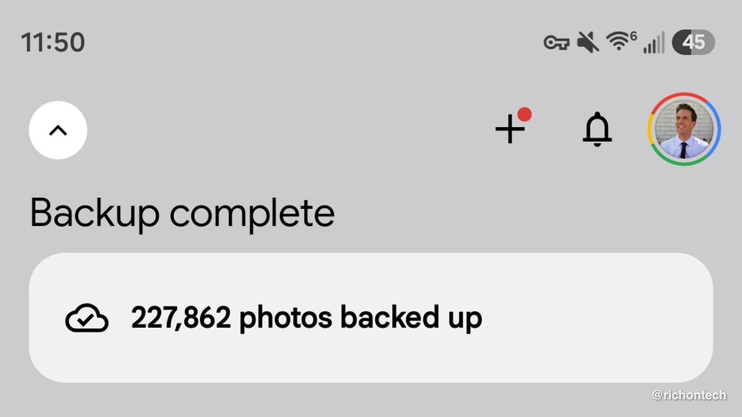 You can check your own count by opening the Google Photos app and tapping the “Backup complete” indicator in the upper left.