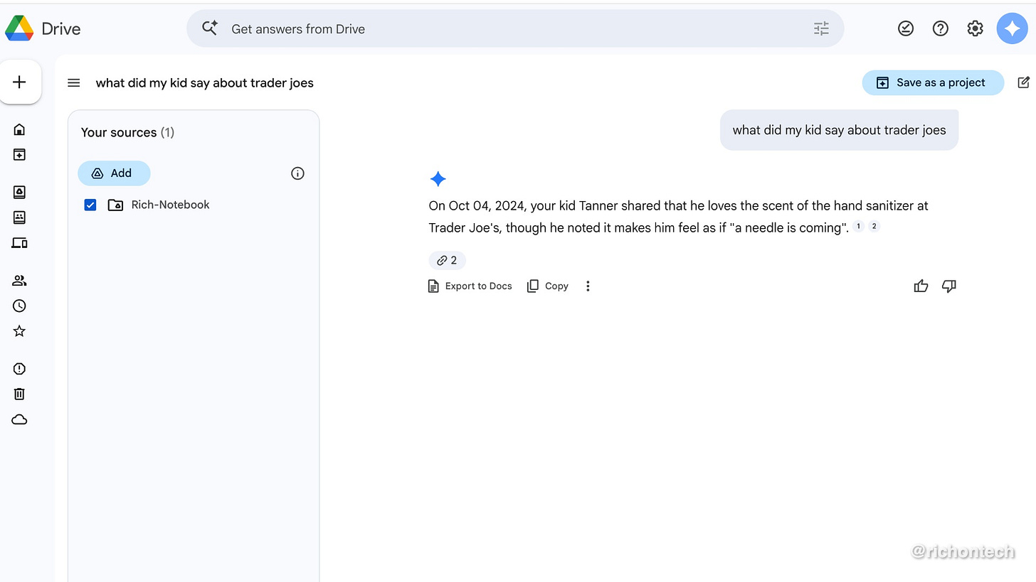 Since I often jot down notes about my kids and the silly things they say, I can now just ask the AI to tell me something funny one of them said and it will pull up an answer.