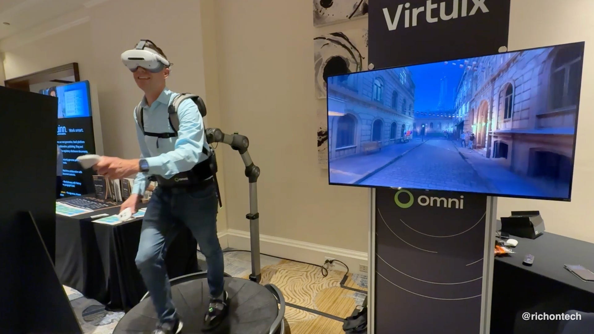 The Omni One uses a low-friction base and special shoes to turn gaming into a full-body, immersive experience.